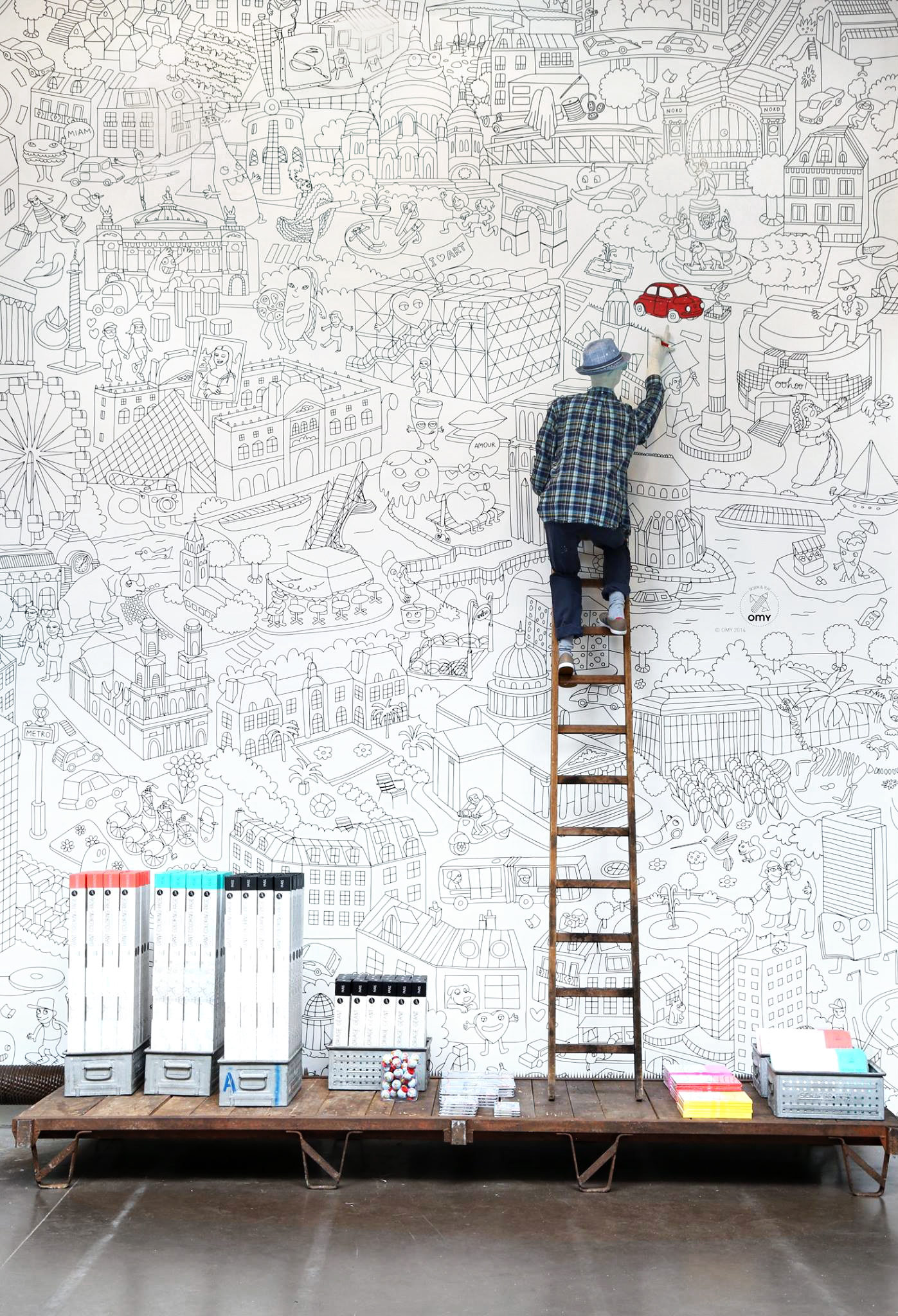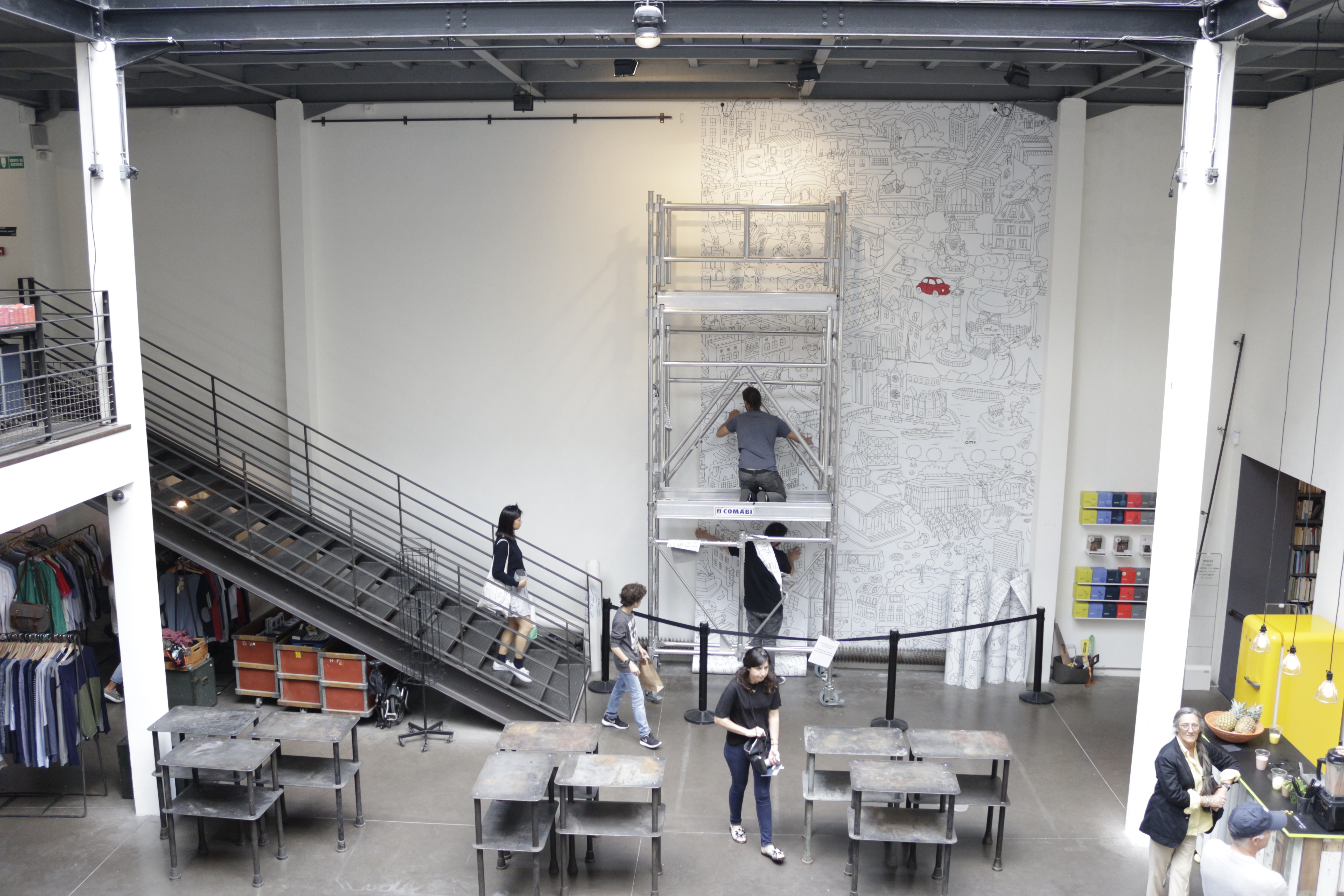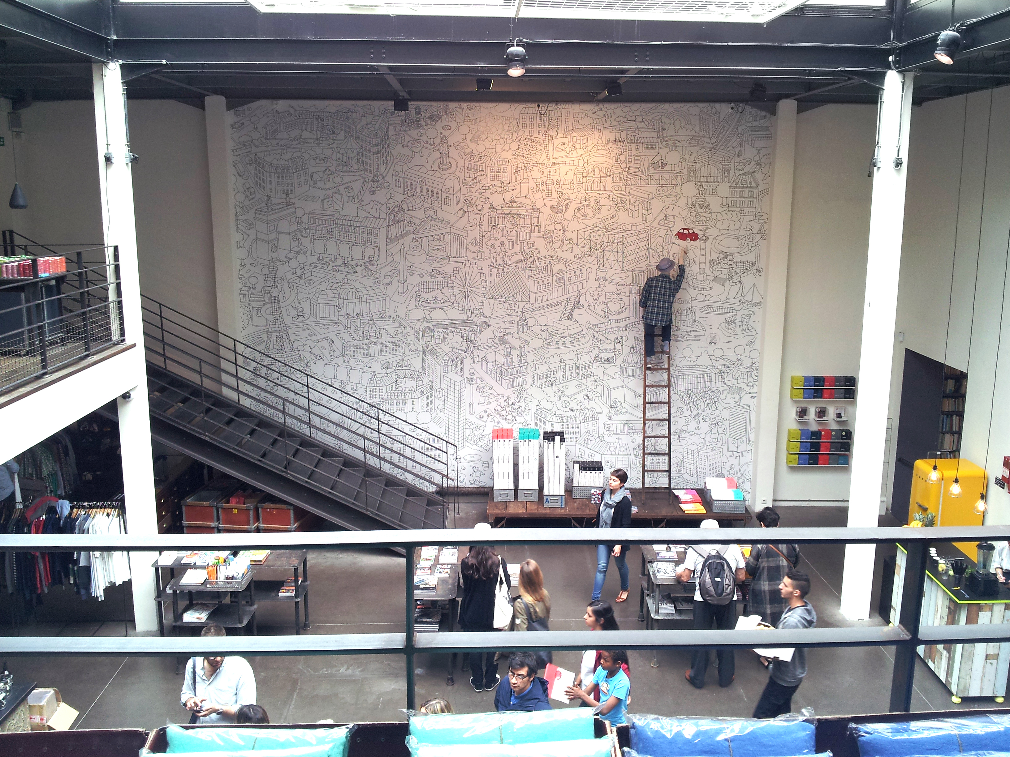 Recouvrement du mur chez Merci, Paris.